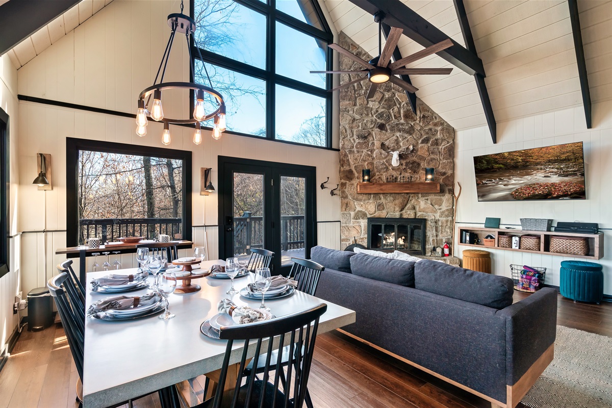 ➣Cozy living room with a wood fireplace and a flat-screen smart TV